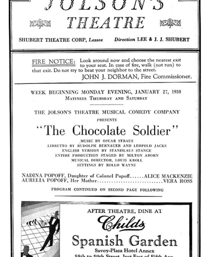 1921 - Jolson's 59th Street Theatre - Named for Al Jolson, Opened October 6, 1921